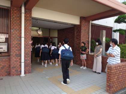 夏の太陽が容赦なく照りつける朝。皆さん元気に登校してきました。明日から全学年で学期末懇談会が始まります。1学期の振り返りや夏休みの過ごし方、2学期に向けて等、担任とお話しあいください。