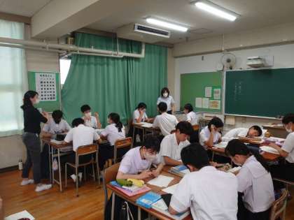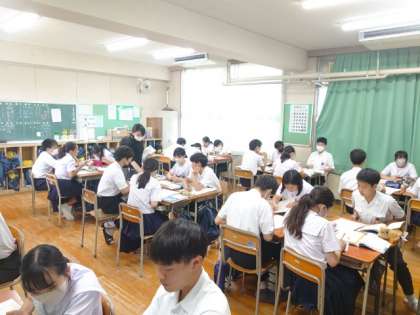 3年生国語の授業で和歌の世界を味わいます。「万葉集・古今和歌集・新古今和歌集」の中から数首を選んで、和歌が詠まれた背景や心情をグループで話し合います。グループ学習では、いろんな意見が飛び交い話し合いが盛り上がりますね。