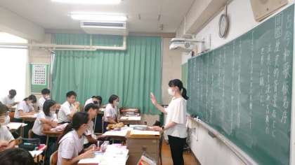 古今和歌集仮名序を音読した後、一文ずつ古文と現代語訳(文)を照らし合わせます。古典の表現に注意しながら、仮名序の内容を読み取ります。紀貫之の和歌に対する思いを汲み取れましたか?