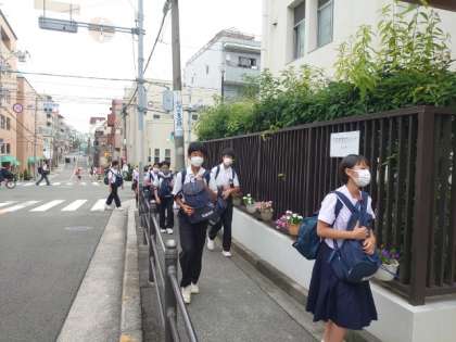 雨の気配は無いものの灰色の雲が広がる朝。連休明けの火曜日に天王寺警察署の方から夏休みの安全な過ごし方についてお話していただきます。事故やトラブルに遭わないよう、気をつけましょう。