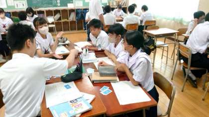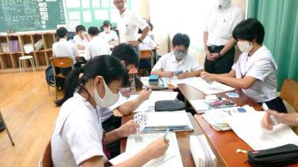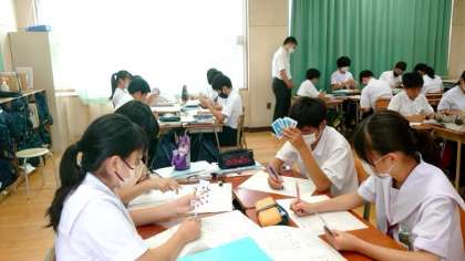 先生からルール説明があった後、グループに分かれてトランプを配ります。配布されるカードは5枚。運もありますが、式の立て方で結果が変わりそう。だれが高得点を獲得できるでしょう?