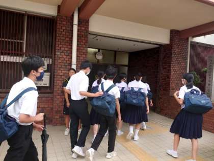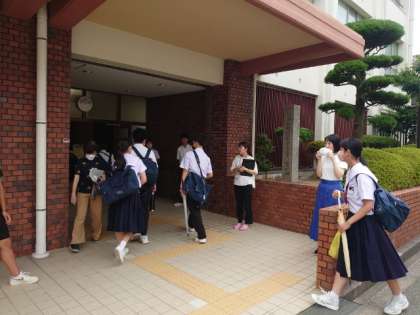 時折ポツリと雨粒が落ちる朝。皆さん元気に登校してきました。1学期も今日・明日のみ。教室に置いている学用品も一旦お家に持ち帰ります。荷物が多い人はこの2日間で計画的に持ち帰りましょう。