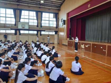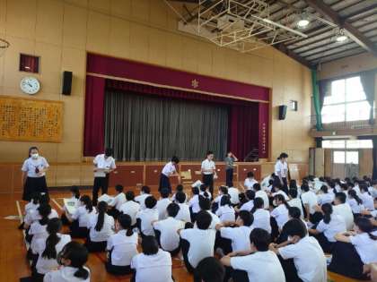 現在、2年生が集会を行っています。先生から文化祭の作品制作について説明していただきました。2年生はみんなで協力して展示作品を発表します。テーマに沿った具体的な作品のアイディアを募集するとのこと。夏休みにいろいろと考えてくださいね。