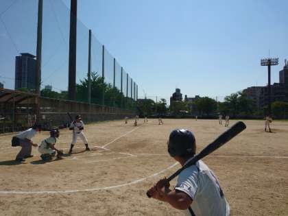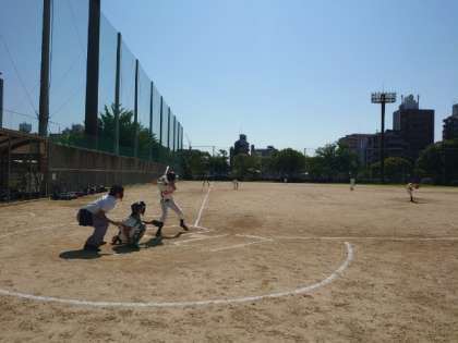 高津中の先攻で試合が始まりました。ボールをよく見て、しっかりスイング。普段の練習の成果を発揮しています。2年生ピッチャーも上々の立ち上がり。ナイスピッチングでゲームを盛り上げます。