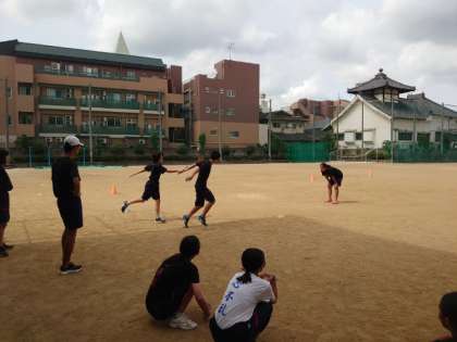 朝のグラウンドでは陸上部の皆さんが練習に励んでいます。トラックを一周した後、バトンパスを行います。しっかりと声をかけながら、スムーズなバトンパスをめざします。繰り返し取り組んでパスの精度を高めましょう。