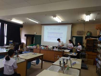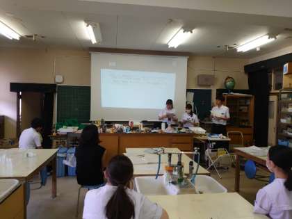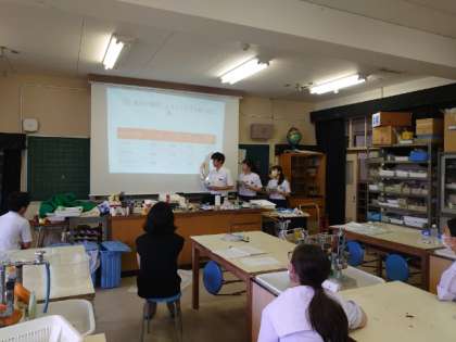 科学部の皆さんが研究発表のリハーサルを行っています。この後、高津高校で高校の科学部と交流するとのこと。まずは中学校での活動を高校生に紹介するそうです。上手く発表できると良いですね。