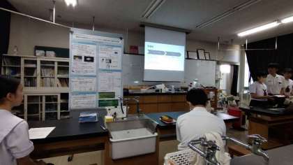 科学部の皆さんが高津高校を訪問し研究発表を行いました。研究テーマは「一般家庭で育てやすいグリーンカーテンの条件」。家庭でグリーンカーテンを作るのに適した植物や土壌について研究しました。皆さん、高校生との交流に刺激を受けた模様。招待してくださった高津高校の皆様、ありがとうございました。