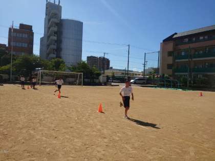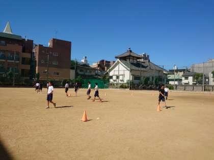 朝のグラウンドで陸上部の皆さんが練習しています。お盆明けの記録会にむけて、それぞれが記録更新をめざします。ずいぶんと走りに力強さを感じられるようになりました。