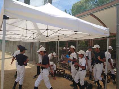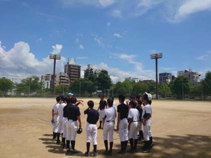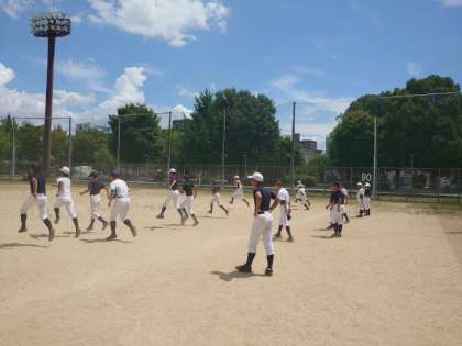 真田山グラウンドに野球部の皆さんがやってきました。中学校の運動場では(狭くて)できない練習を行うとのこと。グラウンドの使用時間が決まっているので、有効に活用しましょう。