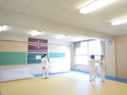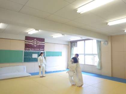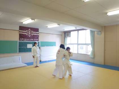 柔道部の皆さんが稽古に励んでいます。今は打ち込みの練習中。相手の体制を崩して投げる手前までの動きを繰り返します。反復練習によって身体に動きを覚えこませるそうです。皆さん頑張ってくださいね。