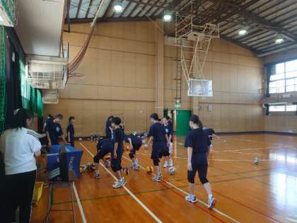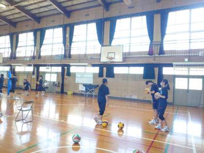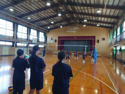 体育館で女子バレーボール部の皆さんが練習中。昨日の秋季大会予選で先輩方が引退し、1、2年生中心の新体制になりました。これから新チームがスタートします。互いに励ましあい、高めあえる関係を築いてください!