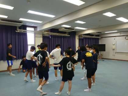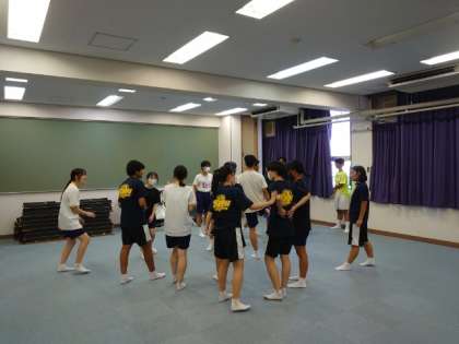 3年生のダンスリーダーさんが何やら相談中。体育大会学年演技の創作ダンスのディテールについて調整します。より高度な技をめざして頑張るリーダーの皆さん。熱い気持ちがひしひしと伝わってきます。