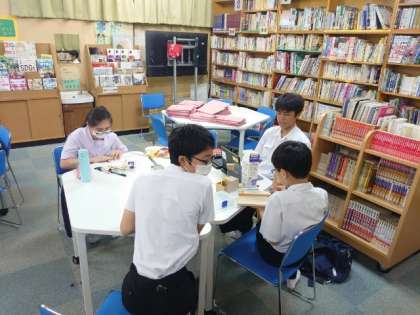 理科室・図書室で科学部の皆さんが活動しています。文化祭で発表する展示作品を作成しているそうです。ユニークな作品はみんなを毎年楽しませてくれるいます。今年の作品も期待していますね。