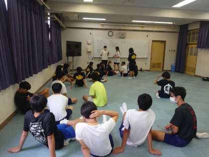 3年生の皆さんが取り組んでいる体育大会の学年演技。自分たちで振り付けを考えるのですが、なかなか納得できる仕上がりに到達していない模様です。複数の場面に応じてさまざまな集団演技を披露する予定。産みの苦しみですが、皆さんの豊かな創造力を期待しています。