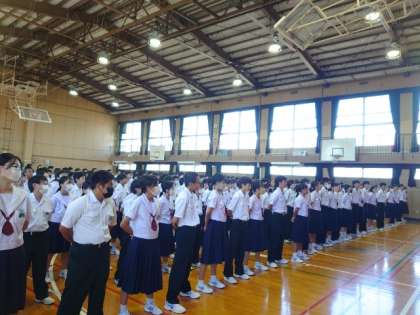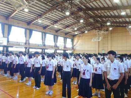 今日から2学期が始まります。今朝は体育館で始業式を行いました。皆さん早めに登校して、式に備えます。気持ちがしっかりと切り替えられており感心します。