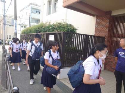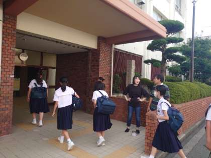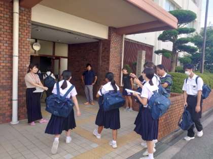 青空に綿雲が浮かぶ朝。今日は全学年でテストを実施します。プリントやノートを手に登校する人もいるようです。ケアレスミスに注意して、ベストを尽くしましょう。