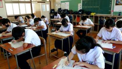 課題テスト2時間目。2年生の皆さんが社会科の問題を解いています。南米やオセアニア、中国・四国地方や近畿地方など、地理的分野から幅広く出題されている模様。夏休みの課題をベースにした問題なので、見覚えがあるハズですよ。