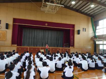 木曜日の朝は2年生が学年集会を開きます。今朝は2年生が使う手洗い場について先生からお話がありました。最近、手洗い場の石鹸が粗雑に扱われているそうです。集団生活の中ではちょっとした心遣いが大切です。次に使う人のことを考えて行動できるようになれば良いですね。