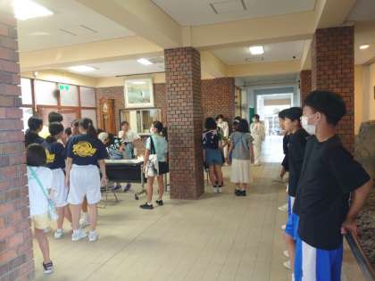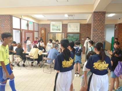 校区の小学生が中学校の部活動を体験する「ベアーズ」の活動が行われます。放課後の玄関ピロティにたくさんの児童がやってきました。前回は雨のため、サッカー・野球がお休みでしたが、今日は大丈夫。皆さん楽しんでくださいね。