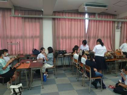 校内のあちこちでベアーズの活動が始まりました。柔道部では柔道着の着方を、吹奏楽部では楽器の演奏を体験しているようです。体育館ではバスケットボール部がウォーミングアップ中。先輩方にいろいろと教わってくださいね。