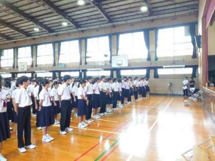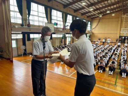 週の始めは全校集会を行います。今朝は大阪市立中学校総合文化祭の展示部門に出展した美術作品の表彰を行いました。美術の授業で制作した作品が多数表彰されて良かったです。文化祭での発表が楽しみです。