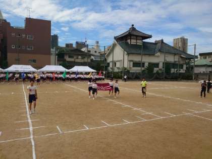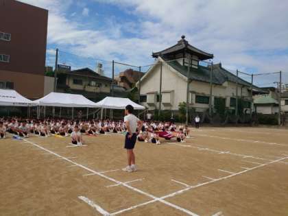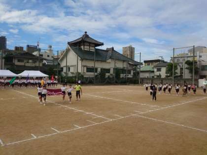 実行委員長から今日の演習に向けた激励のあいさつがあり、いよいよ入場行進が始まりました。午前中の演習、みんなで頑張りましょう。