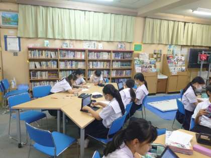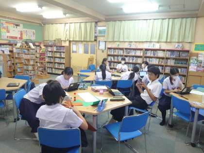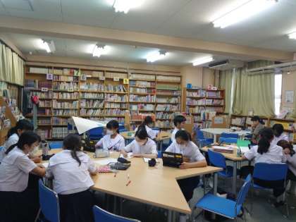 放課後の図書室では文芸部の皆さんが活動しています。文化祭で発表する予定の小説を執筆しているとのこと。皆さん、進行状況はいかがですか?