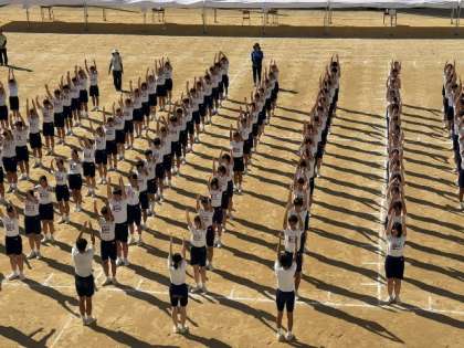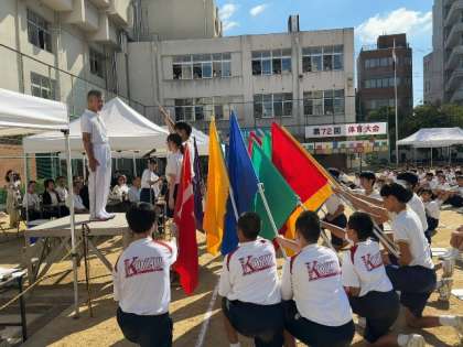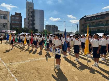 開会式では3年生の体育委員さんが選手宣誓。みんなで団結して、優勝をめざします。開会式後のラジオ体操も美しいです。