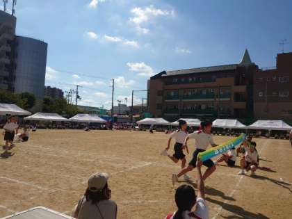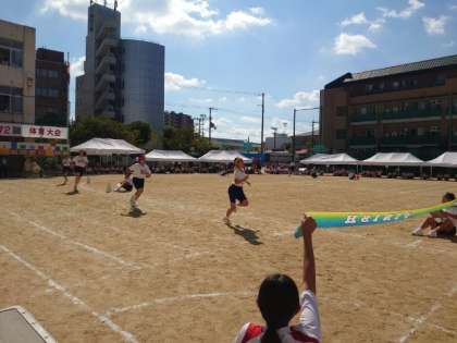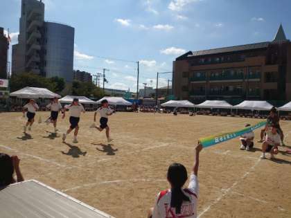 個人種目が始まりました。まずは100m走から。皆さん、トラックを駆け抜けます。