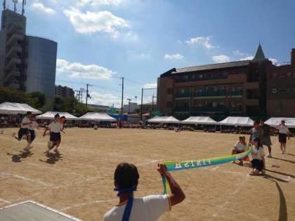 男子100m走のようすです。先ほどの女子に増して、スピードが上がり、迫力を感じます。