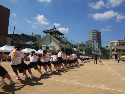 2年生の綱引きのようすです。5クラスあるので、トーナメントでなく、リーグ戦で実施します。