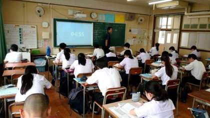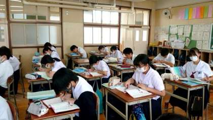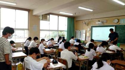 2年生英語の授業で動名詞の使い方を学習中。「動詞+ing」で「〜すること」という意味になります。「〜すること」は「to+動詞の原形」でも表現可。しかし、enjoy や finish の後は、動詞+ing になるそうですよ。使い方に気をつけましょう。