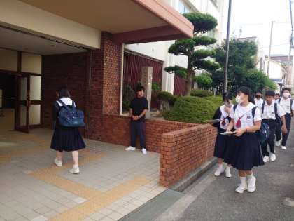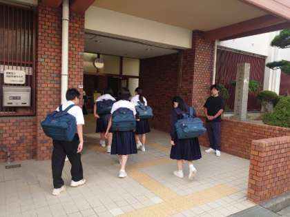 気持ち良い秋空が広がる朝。今日から中間テストが始まります。今朝はノートやワークを手に登校する人が多い模様。今日・明日の2日間、頑張ってくださいね。