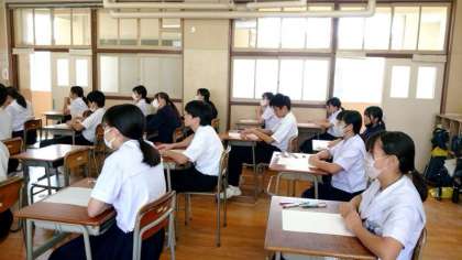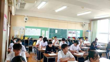 中間テスト2時間目。理科のテストが始まりました。2年生の皆さんが問題を解き進めます。理科室で実験した化学反応に関する問題が出ています。どんな結果だったか、実験内容をよく思い出してくださいね。