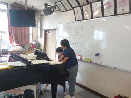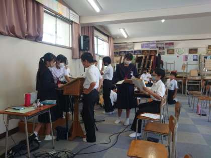 1年生の皆さんが音楽室で合唱の練習中。各パートに分かれて、繰り返し歌っています。明後日の金曜日に合唱コンクールのリハーサルがあるそうです。本番に向けた良い機会になれば良いですね。