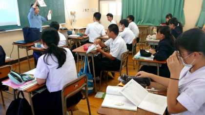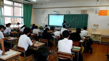 2年生国語科の授業で「漢詩」を学習します。今日は漢詩を訓読するときの読む順番をパターン別に教わります。レ点や返り点が付いていると順番が変わります。規則性があるので、しっかりマスターしましょう。