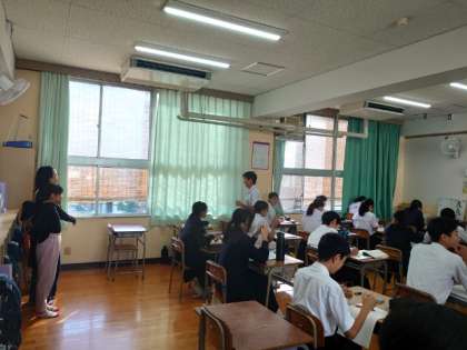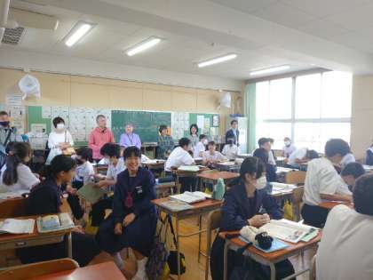 1時間目の授業が始まりました。早朝から多くの保護者の方々に来校いただいています。小さな子どもたちの姿も。見慣れぬ中学校の様子に興味津々です。遊び道具が無いですが、いろいろと見てくださいね。