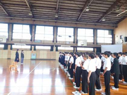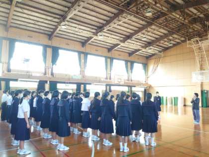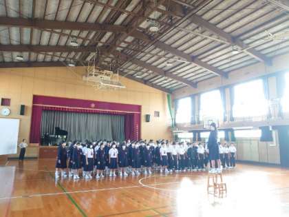 水曜日の朝は1年生の学年集会。合唱コンクールを明後日に控え全体合唱に取り組んでいます。みんなで一緒に歌うのも残りわずか。心のこもった合唱を楽しみにしています。