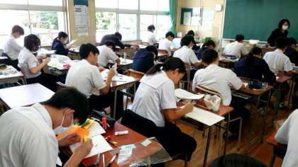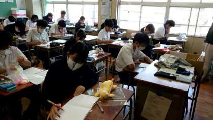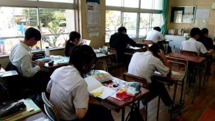 3年生家庭科の授業で幼児向けの絵本を作成します。どんなお話にするか、事前に考えたストーリーを絵本で表現します。可愛い動物など、優しい表情のキャラクターが多い模様。どんな作品が出来るでしょうね?