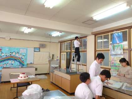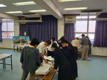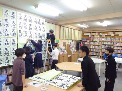 展示発表の各教室では、係生徒の皆さんが作品の飾りつけを行っています。できるだけ多くの作品を見ていただこうと、レイアウトを考えます。校区幼稚園の作品も飾られました。可愛いらしい作品にホッコリします。