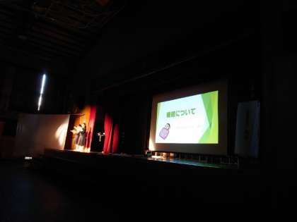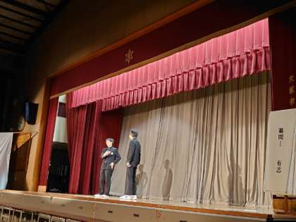 舞台では生徒会保健委員会の南から「睡眠について」報告がありました。寝る時間が午後11時前と後では学習面で大きな違いが出るようです。幕間の有志によるギターや漫才も面白いですね。