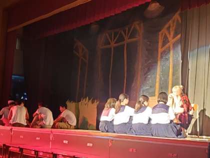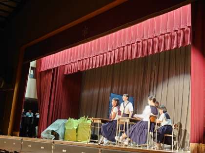 舞台発表の大トリは3年生の創作劇「手紙」。現代を生きる強気な由希と戦時中を生きる気弱な健太の不思議なお話。演者さんと裏方さんの息ぴったりの舞台です。