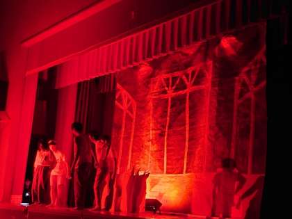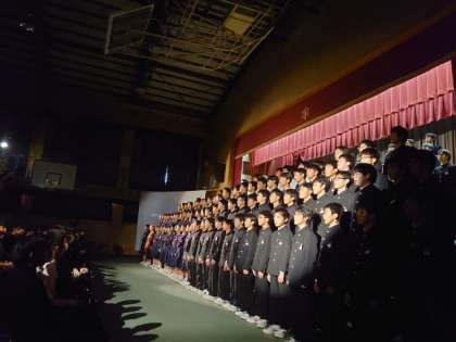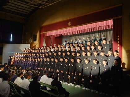 迫真の演技と、迫力あふれる演出に皆さん引き込まれています。フィナーレは全員で「手紙〜十五の君へ〜」を合唱。中学校生活最後のステージを感動で締めくくります。