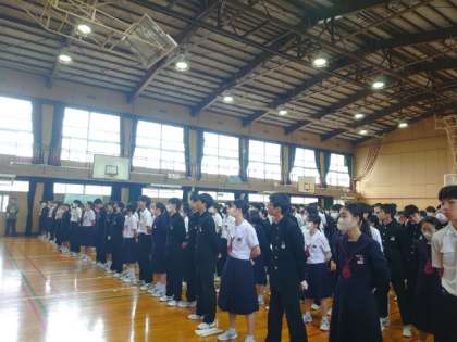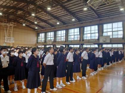 月曜日の朝は全校集会。先週木曜日の文化祭を成功裡に収め、今日から平常の学校生活に戻ります。学年やクラスで培った協力関係を授業や諸活動に活かしましょう。