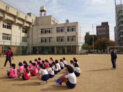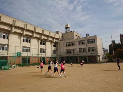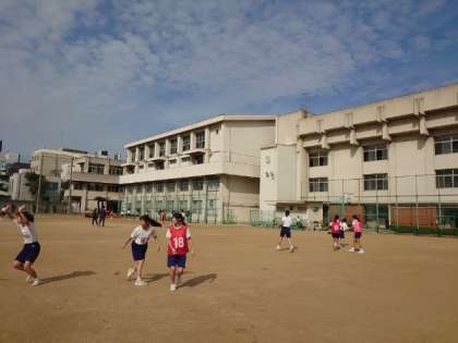 3年生女子体育で「アルティメット」を楽しんでいます。フリスビーを投げ合ってゴールをめざすニュースポーツ。秋空の中、グループ毎にフリスビーをパスしあっています。上手くパスが通れば拍手が起こります。皆さんとても楽しそうです。
