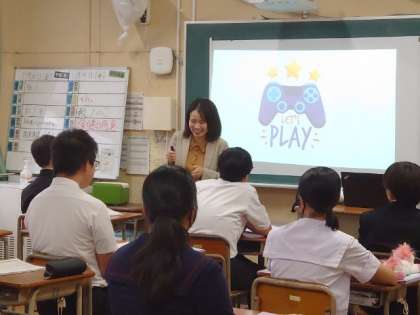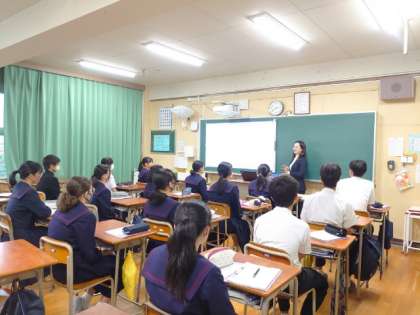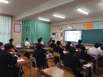 職業講話の6時間目は各教室に分かれてお話を伺います。事前アンケートで聞きたい企業を選びました。関心のあるお仕事なので、皆さん興味津々です。いろいろと教わりましょう。
