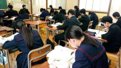 2年生国語の授業で「共生社会を築くために必要なこと」について自身の考えを原稿用紙に書き込みます。字数が指定されているので、多すぎず少な過ぎずの塩梅が難しいですね。皆さん頭をひねりながら名文を考えています。