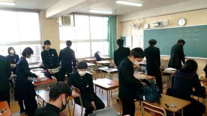 3年生の教室でもお片付けが始まりました。今学期は毎月複数回のテストがあり大変でした。(来週火曜日も実力テストを予定しています。) なかなかホッとできる間がありませんが、仲間とともに乗り切ってくださいね。