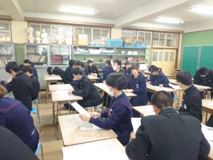 2年生美術の授業で期末テストの結果が返ってきました。ルネサンス期の美術史など、知識を問う問題に加え、デッサンの実技テストもありました。限られた時間でデッサンを描くのは大変だったでしょう。皆さんよく頑張りました。