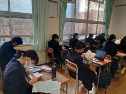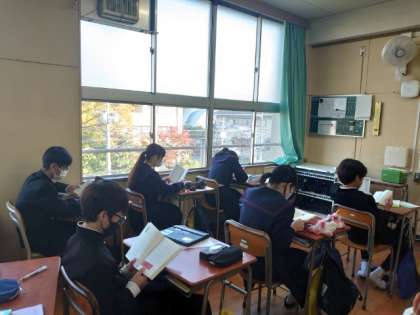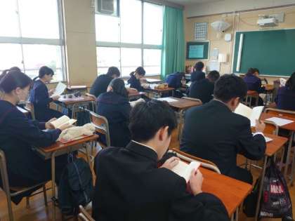 昨日から始まった朝の読書活動。2年生の教室でも、好きな本を持ち寄って、穏やかな時間を過ごしています。小説や歴史物、ノンフィクションなどさまざまです。自身が所属する部活動のスポーツ関係を読んでいる人もいるようですね。